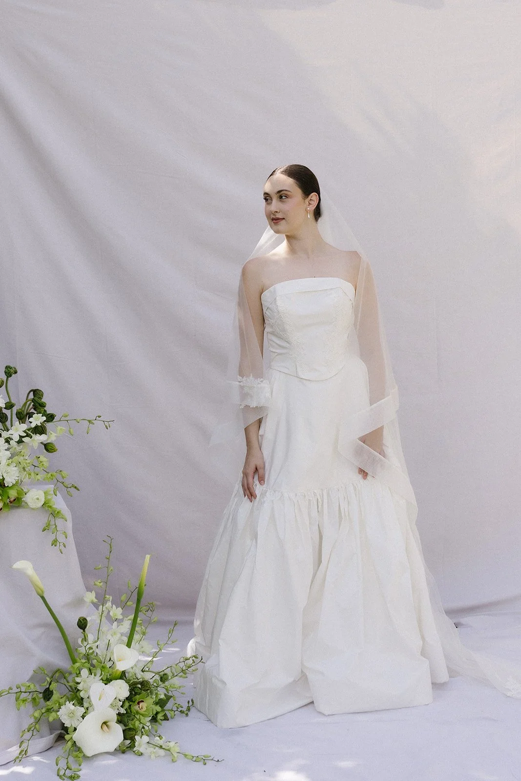 Main Fabric: Silk Taffeta OR Stretch Satin in ivory