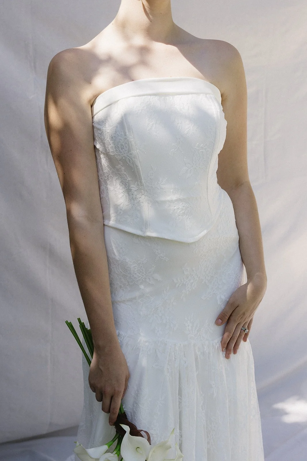 If made from the Silk Taffeta, two perfectly placed corded lace motifs are hand sewn onto the front of the corset.